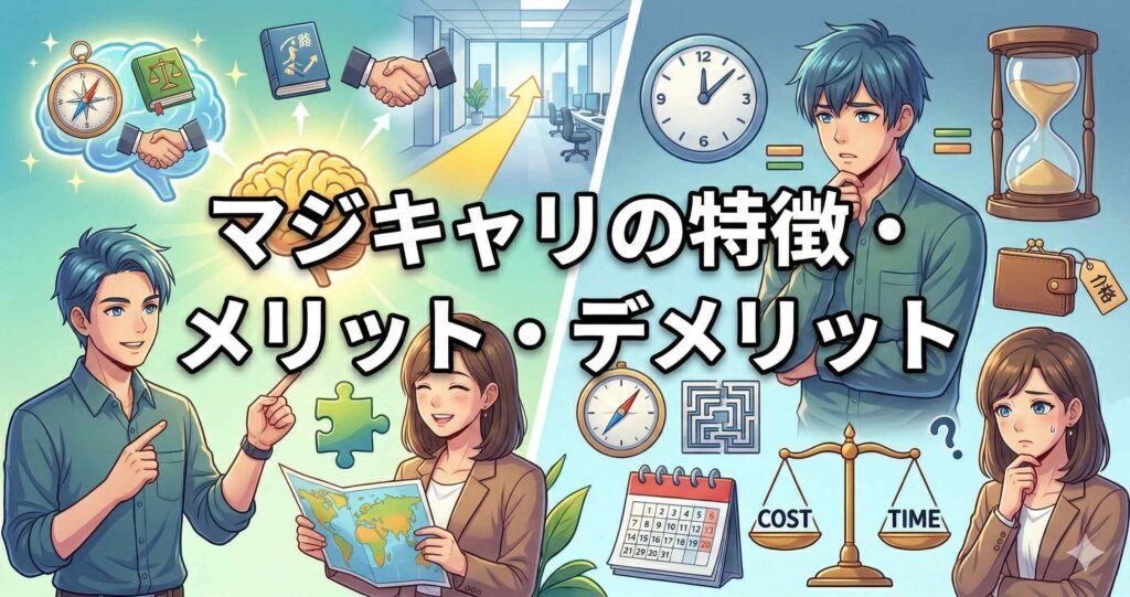 一方マジキャリは、転職エージェント事業で培ったノウハウを活かした実践的な転職支援に強みがあります。