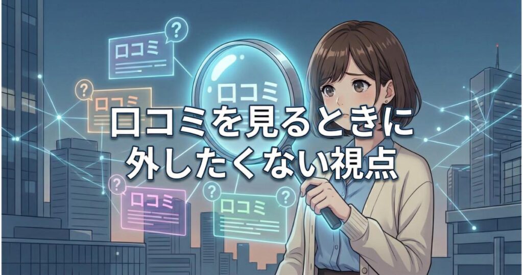怪しいかどうかを口コミだけで決めると、強い言葉に引っ張られて必要な情報を落としやすいからです。
