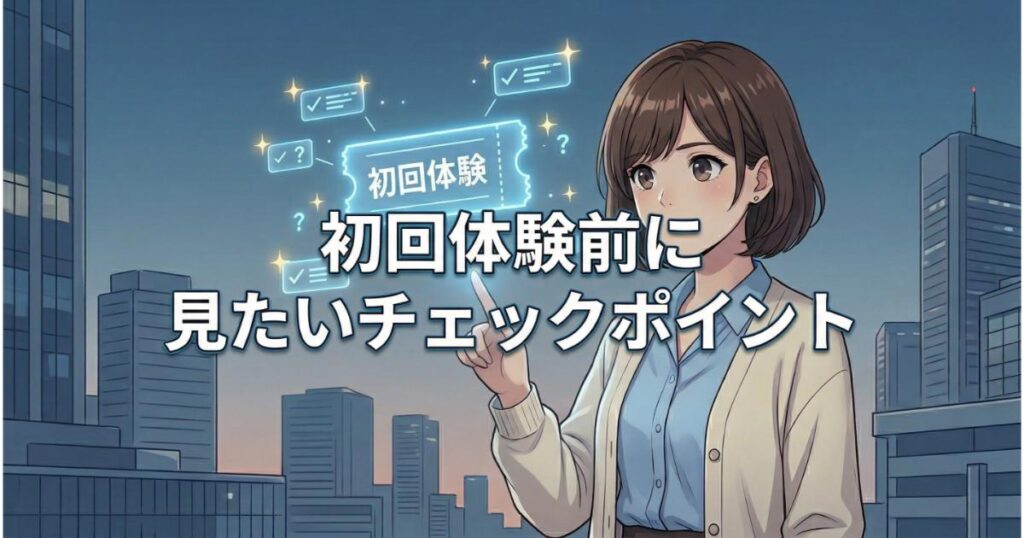 だからこそ、初回体験は盛り上がったかどうかではなく、自分の判断軸が少しでもクリアになったかで見るのがおすすめです。